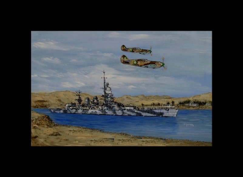 Battleship Italia steaming in the Suez Canal enroute to internment at the Great Bitter Lake Nov 1943.