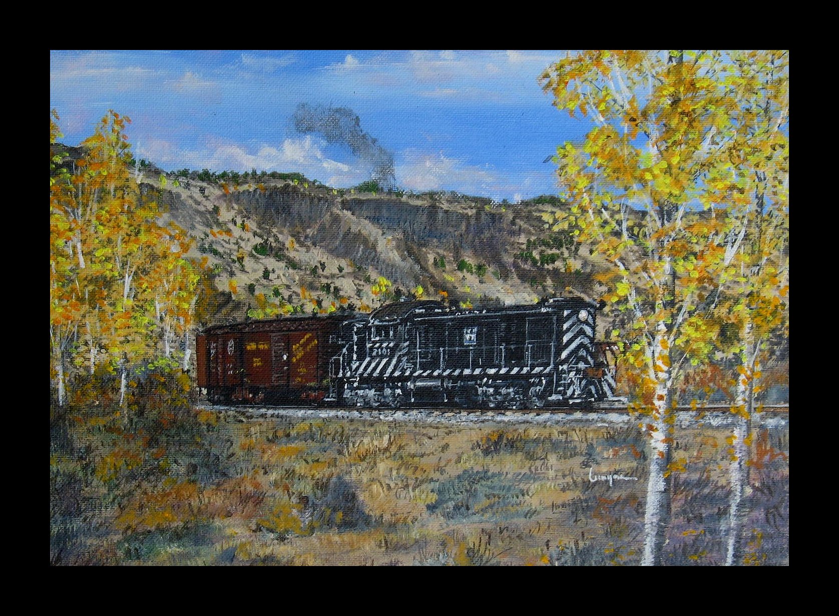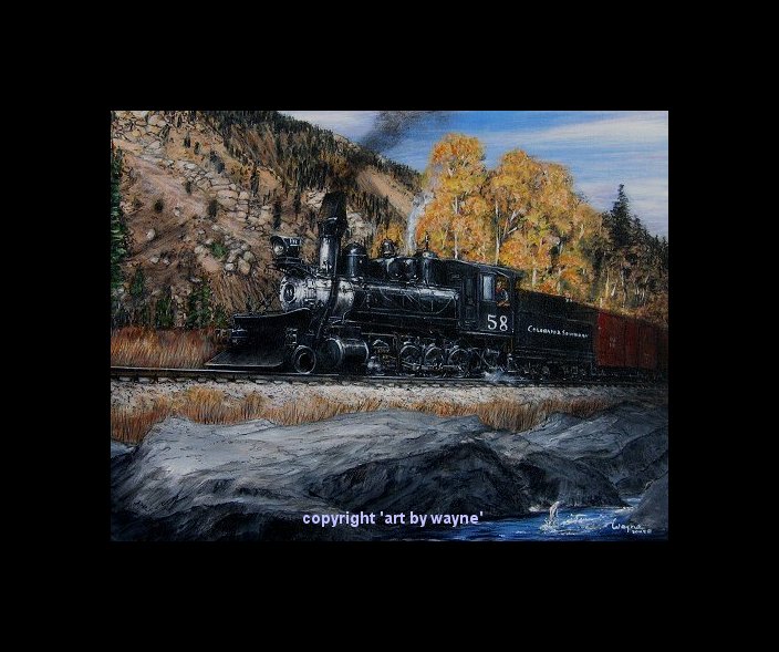 Colorado and Southern narrow guage 2-8-0 No. 58 headed up Clear Creek to Georgetown CO in 1943. And the trout are jumping and fishin's good.
