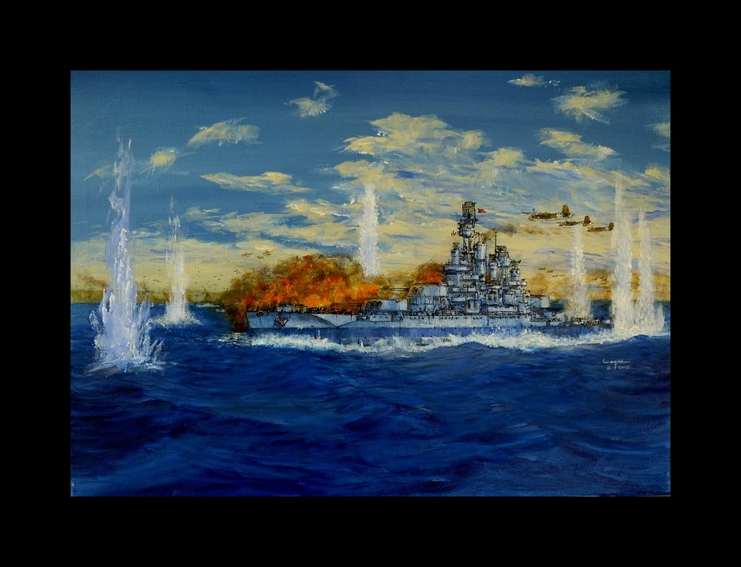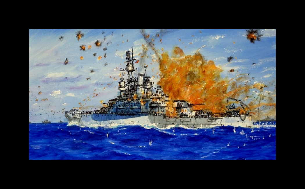 USS Nevada was hit off Okinawa on 27 Mar 1945. And although damaged Nevada was able to carry on and support the troops ashore.