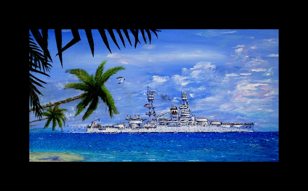 USS Nevada BB36 off Oahu Hawaii en route to the West Coast for upkeep in Sep 1941 as the last halcyon days of peace slip away