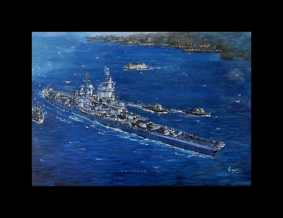 USS Wisconsin BB64 anchored off Havanna Cuba in Oct 1957.